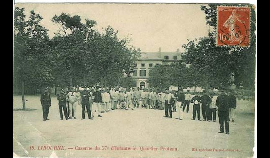 En 1914, le 57e Régiment d'Infanterie est en garnison à Libourne (Gironde) et à Rochefort-sur-Mer (Charente-Maritime).