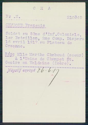 incorporé au 5e RIC le 08/04/1915 ; passé au 42e RIC le 23/07/1916 ; passé au 53e RIC le 14/10/1916