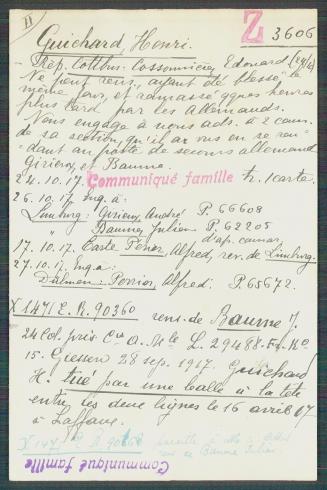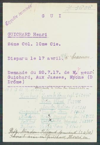 disparu, tué d'une balle dans la tête entre les deux lignes selon Julien Baume du 24e RIC en captivité à Giessen