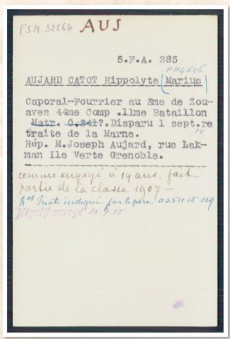 Circonstances du décès : noté disparu le 1er septembre et déclaré décédé le 4 septembre sur la fiche matricule militaire
