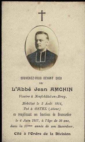 MOLTCHANOFF Jean Marc le 08/06/2015 Source : Bulletin religieux de l'archidiocèse de Rouen, n° 28, du 14 juillet 1917, p. 645-647, n° 39, du 27 septembre 1919, p. 856. La Preuve du sang. Livre d'or du clergé et des congrégations (1914-1922), Paris, Bonne Presse, 1925, T.I, p. 24.