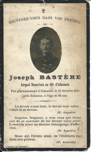 BASTERE Jean-François le 18/10/2017 Source : Documents familiaux (lettres)