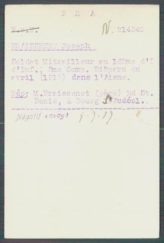 incorporé au 42e RI le 28/11/1913 ; passé au 172e RI le 24/10/1914 ; passé au 162e RI le 08/11/1916 ; affecté à la 3e Cie le 13/11/1916