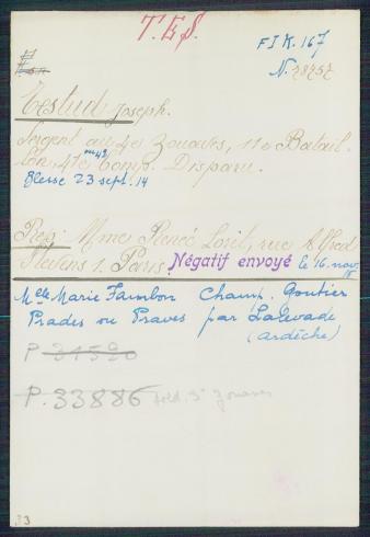 disparu lors de l'attaque des tranchées allemandes entre la ferme d'Hurtebise et la ferme de la Creute, supposé fait prisonnier, décès fixé au dit jour