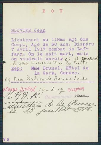 informations militaires cachées sur la fiche matricule sauf nommé lieutenant à titre définitif le 01/05/1917