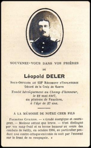 Citation(s) : "Gradé énergique et courageux, s'est distingué par son sang-froid et sa bonne humeur, au cours des combats de Souilly en octobre 1916, en particulier pendant une contre attaque exécutée de nuit après l'adversaire sur le front de sa compagnie"