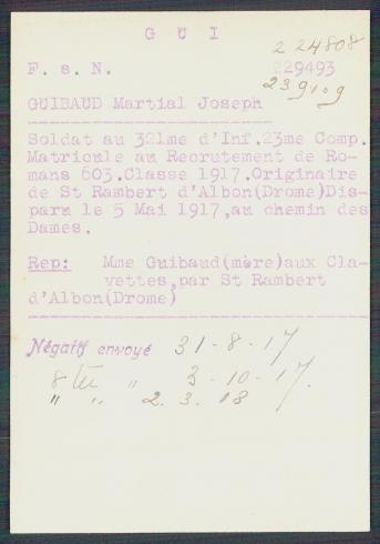 incorporé au 111e RI le 07/01/1916 ; passé au 321 RI le 18/02/1917
