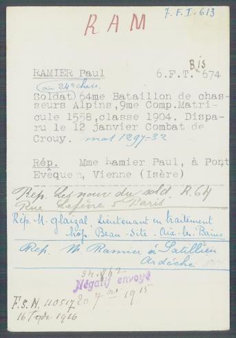 Autre(s) information(s) militaire(s) : rappelé au 64e BCA le 09/08/1914