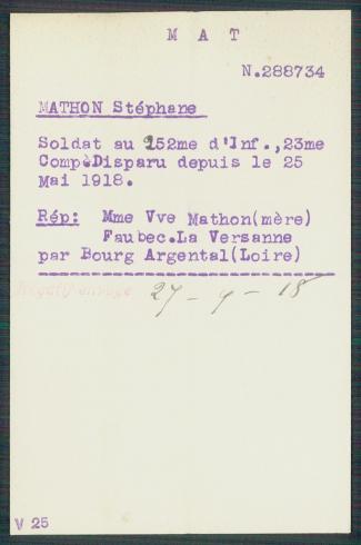 incorporé au 30e RI le 17/12/1914 ; passé au 157e RI le 14/05/1915 ; passé au 158e RI le 20/04/1916 ; passé au 252e RI le 02/03/1918