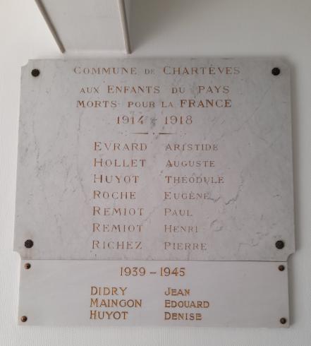 Combattant né le 26/08/1883 contrairement à l'indication de la fiche Mémoire des Hommes, sur le site des archives du département de l'Aisne, pas de trace des naissances de l'année 1883 pour la commune de Chartèves, en l'état des recherches à ce jour (21/08/2021).
